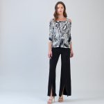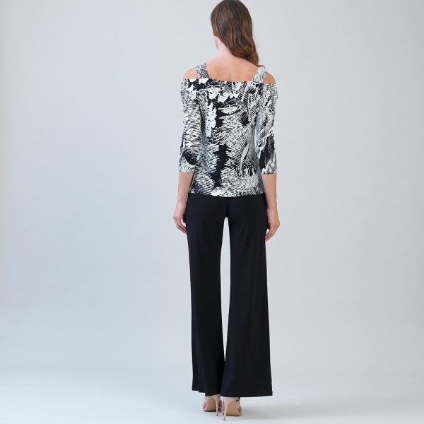 Abstract Print Soft Knit Open Shoulder Top quantity