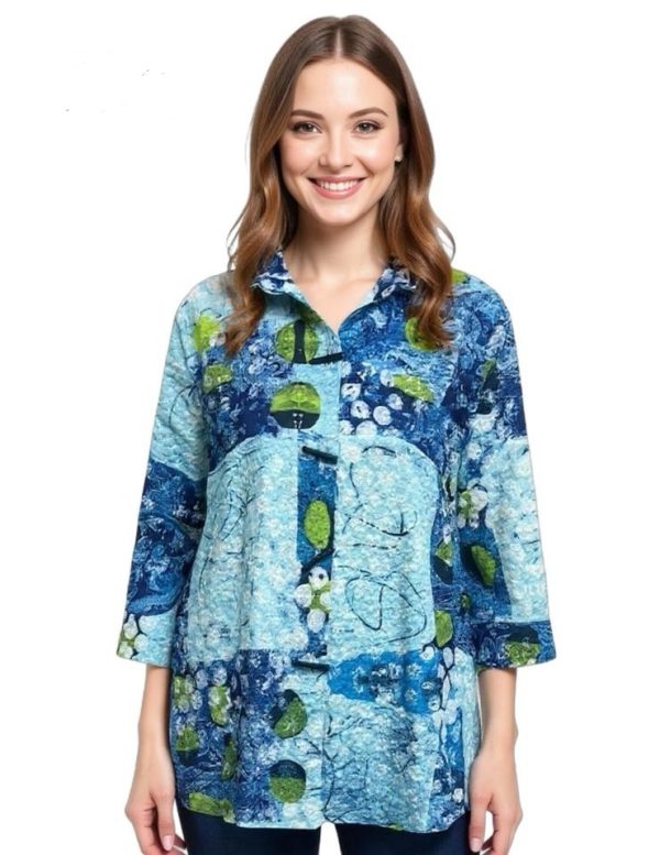 Cuffed Tab 3/4 Sleeve Two Pocket Band Collar Button Front Shirt