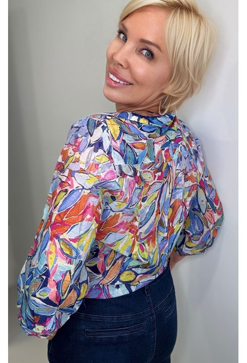 Silver 3/4 Open Slit Sleeve V Neck Top