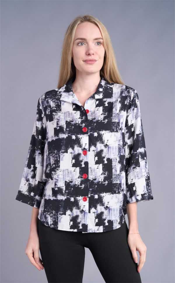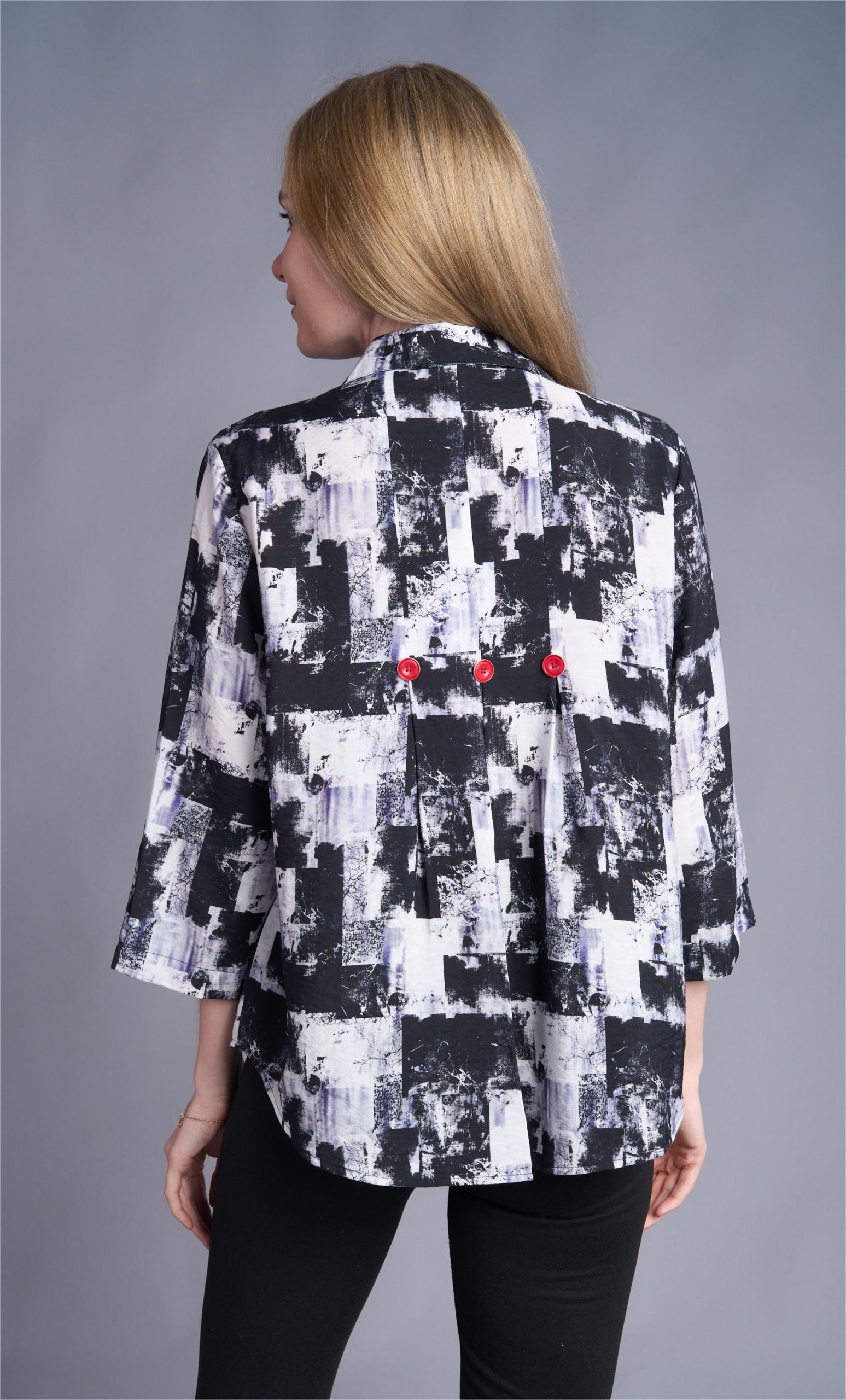 Cuffed Tab 3/4 Sleeve Two Pocket Band Collar Button Front Shirt