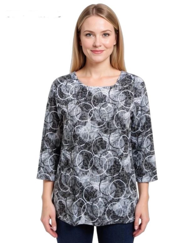 Circles Round Neck 3/4 Sleeve Top