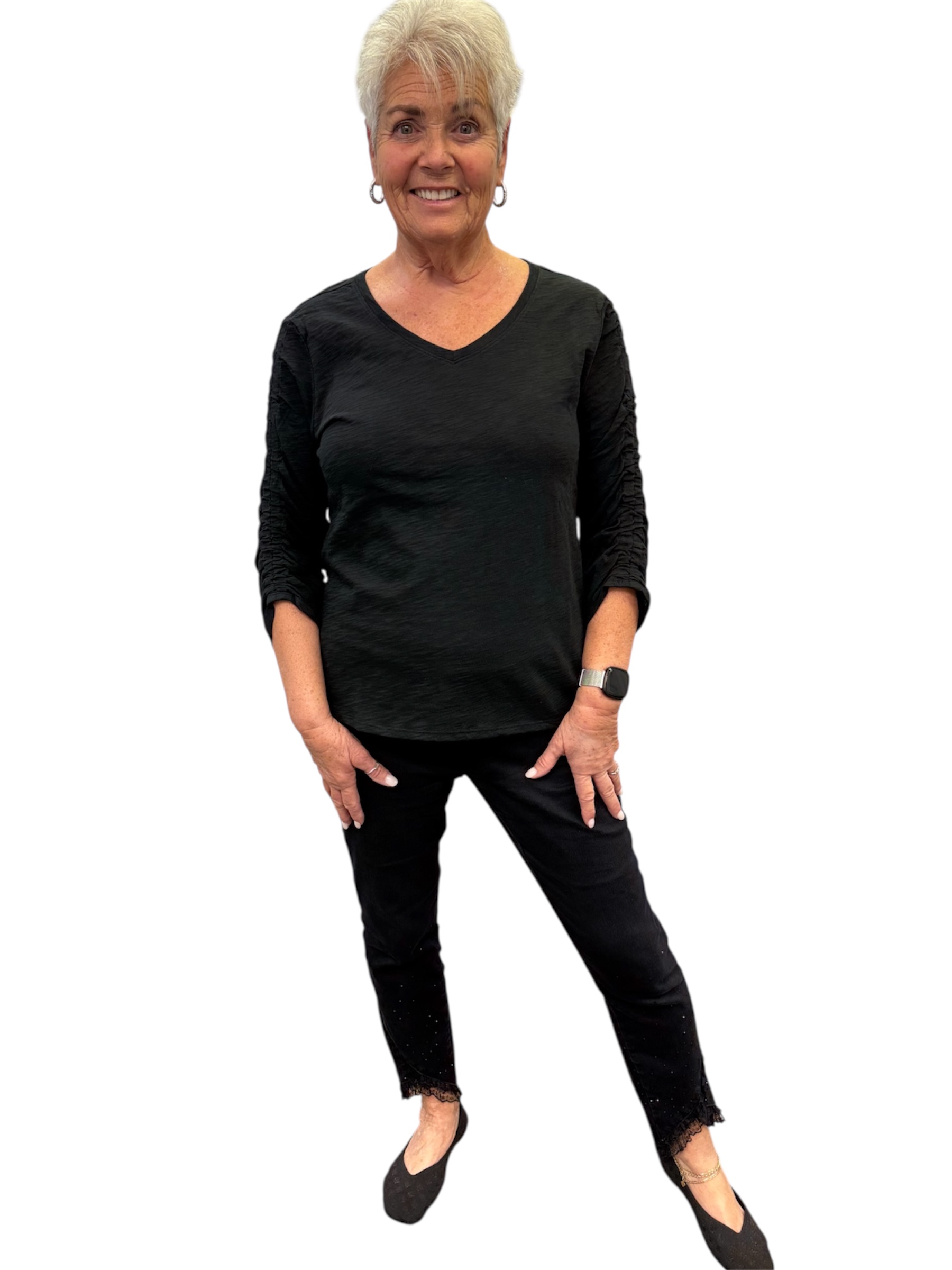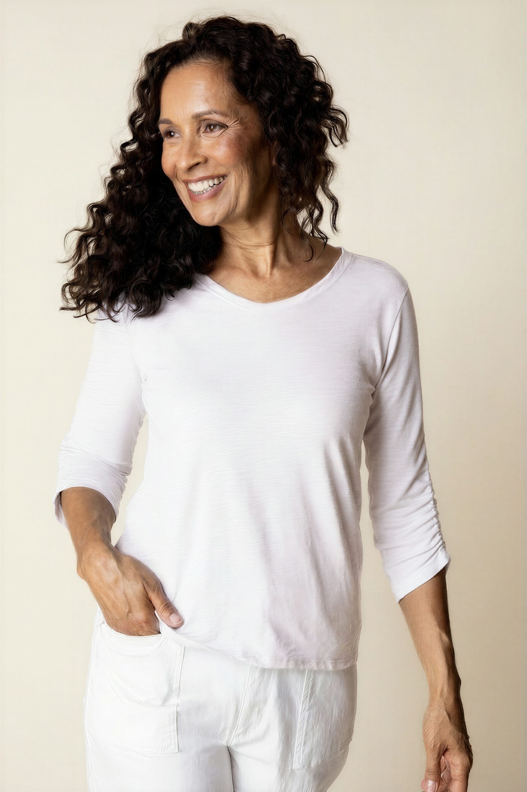 Solid Garment Dyed Cotton Slub Patch Pockets Tunic Top