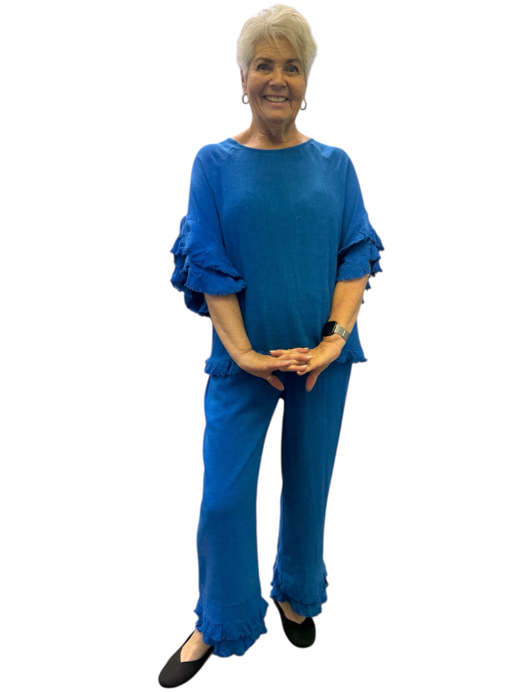 Double Flounce Raglan Elbow Sleeve Scoop Neck quantity