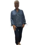 Drawstring 3/4 Sleeve Band Collar Double Fringe Hem quantity