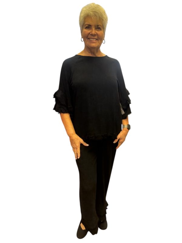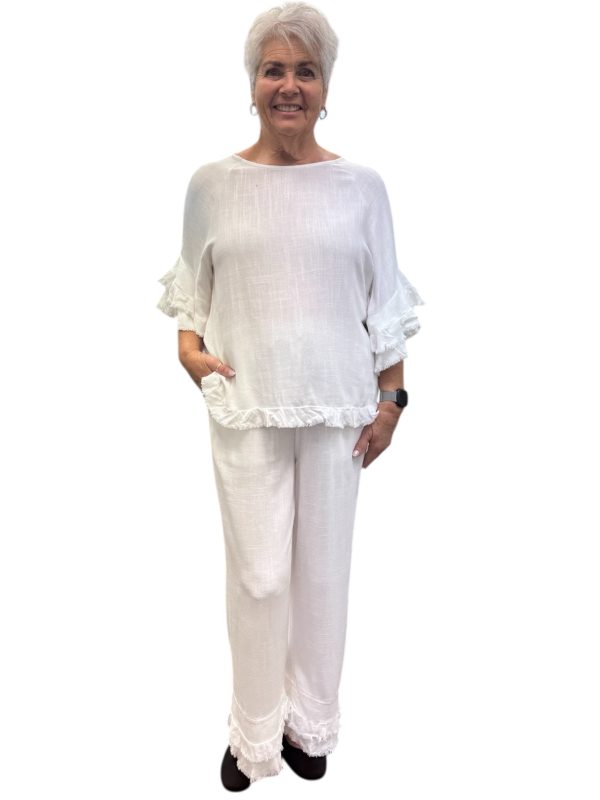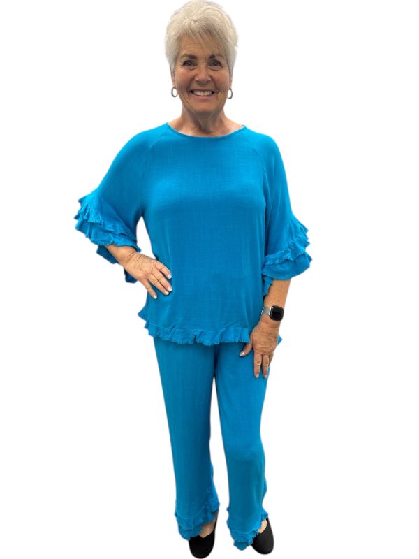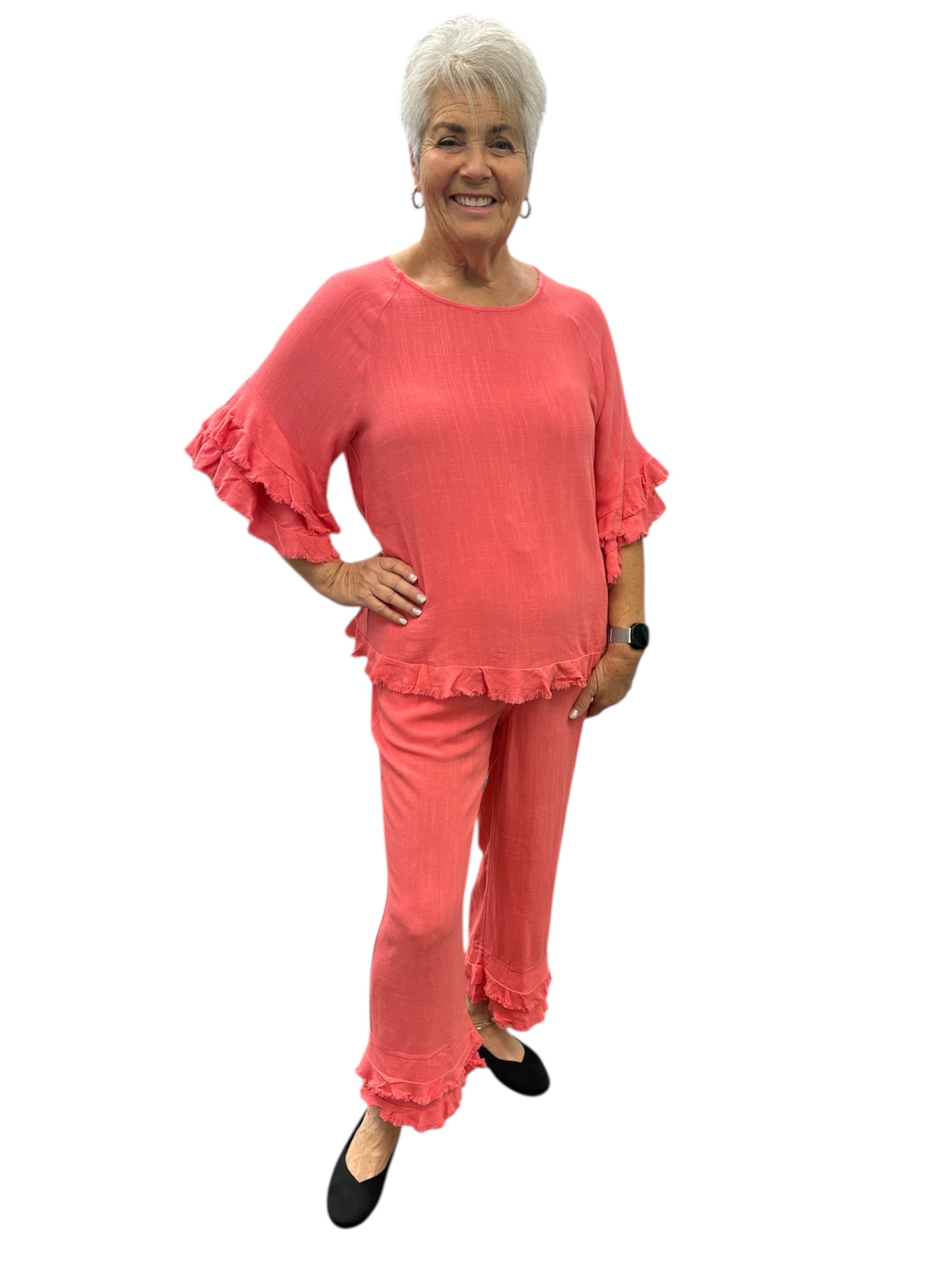 / Drawstring Elastic Waist Front Pocket Double Ruffle Hem Crop Pant