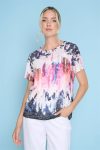 Peony Print Scoop Neck Soft Knit Top w/ 3/4 Sleeve