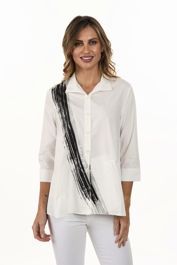 / Flip Collar Button Down Shirt with Double Welt Pockets