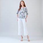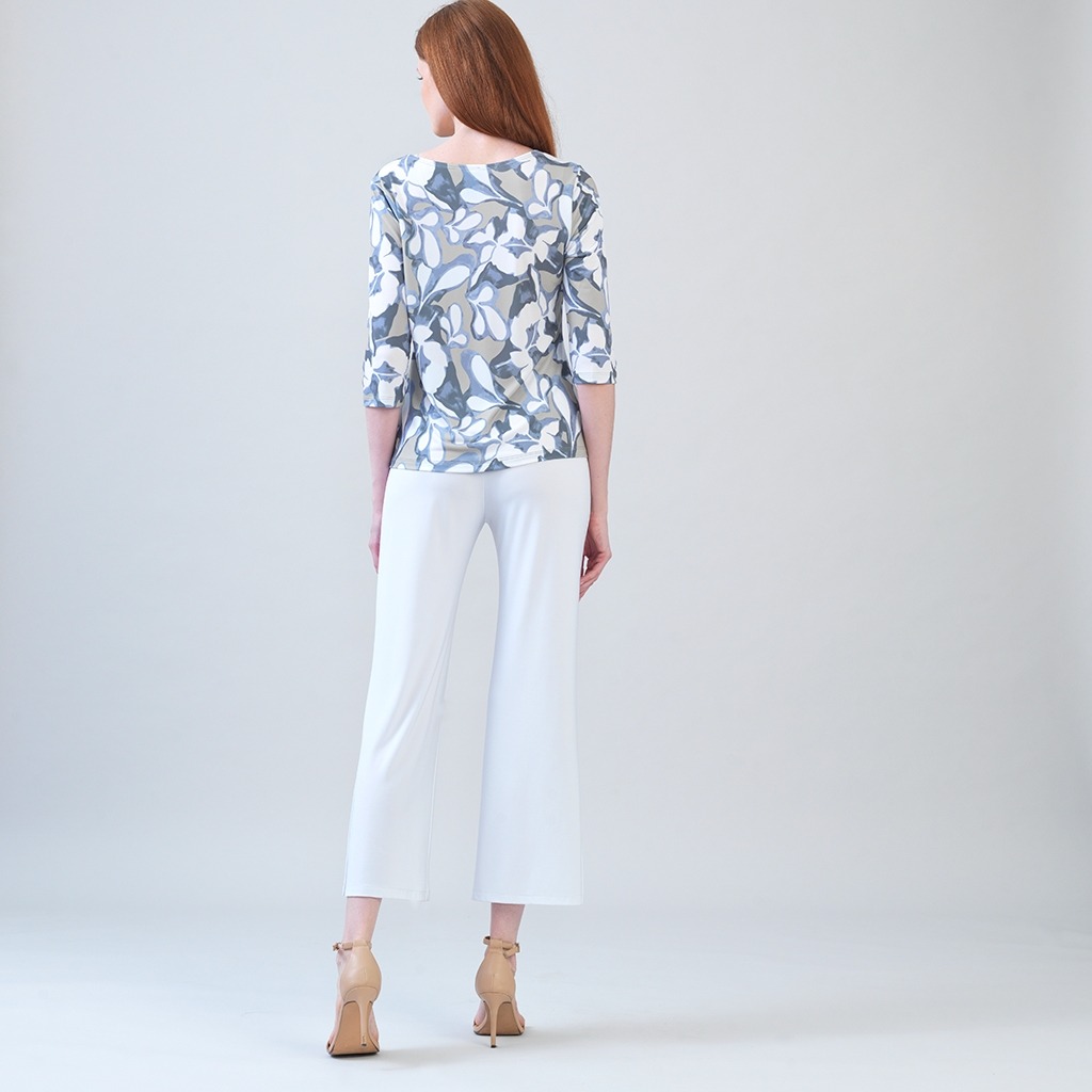 / Floral Print Scoop Neck Soft Knit Top w/ 3/4 Sleeve