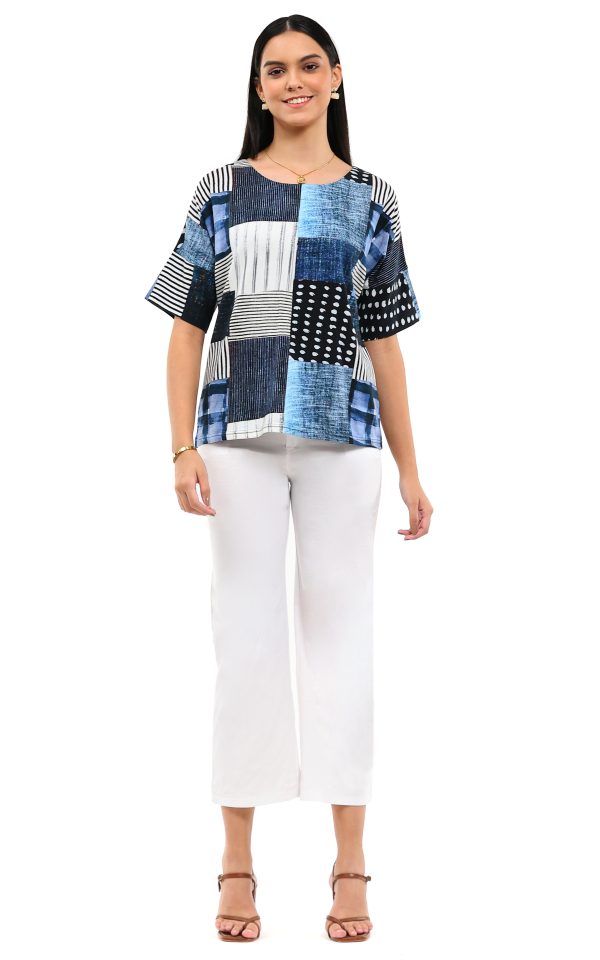 Denim and Red Tribal Print Top