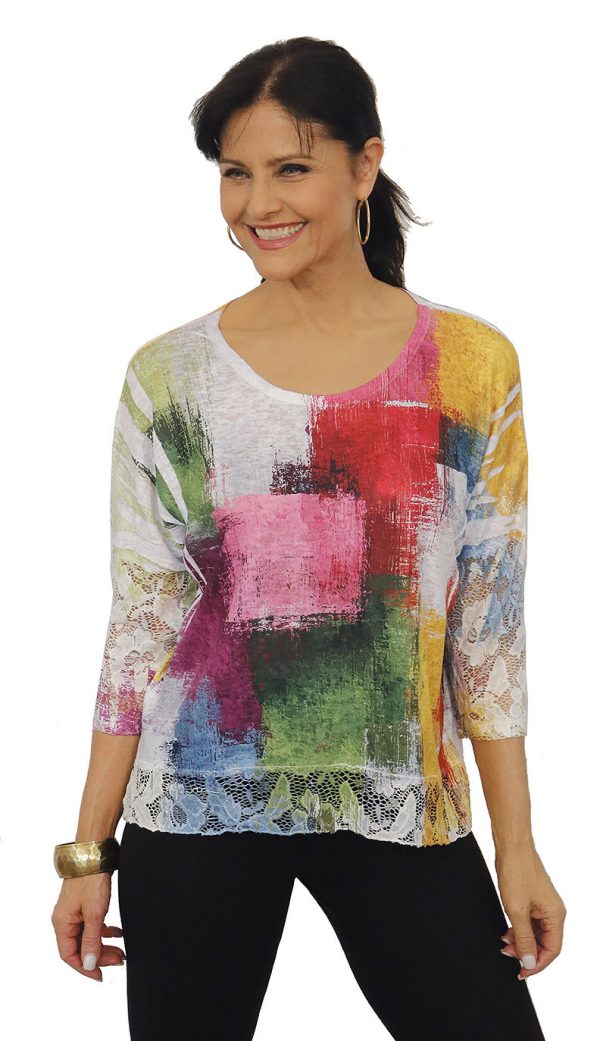 Lumina Burnout 3/4 Sleeve Tunic Top with Round Hem