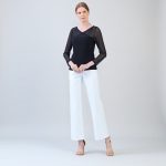 / Mesh Neckline Soft Knit Top w/ Mesh Sleeves