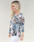 Woven Popover Tunic with Point Collar 3/4 Sleeves with Side Seam Pockets