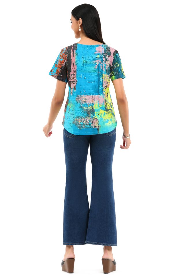 Round Neck Abstract Print Top