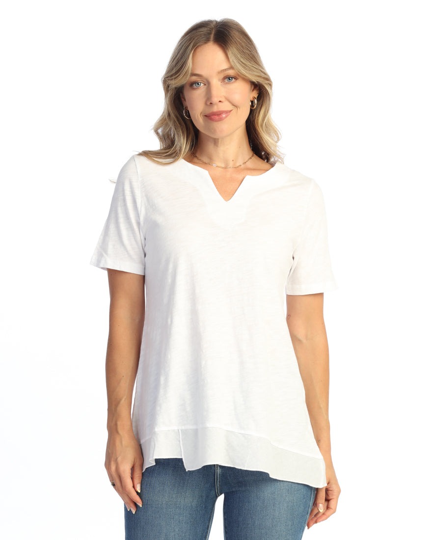 Plus Single Cotton Slub Notch Neck Top with Cotton Linen Contrast