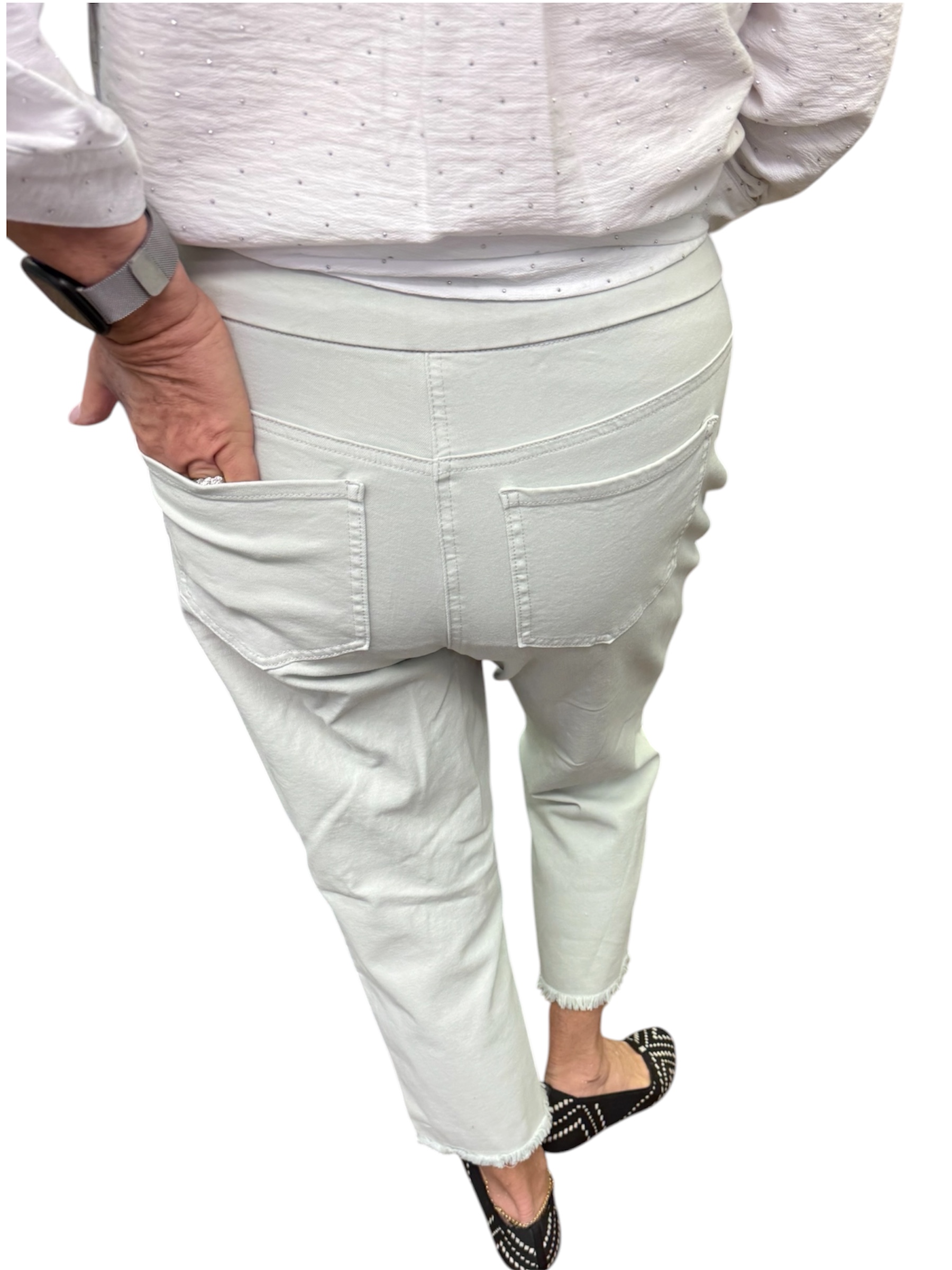 / Pull On Pocket Fringe Hem Crop Pant