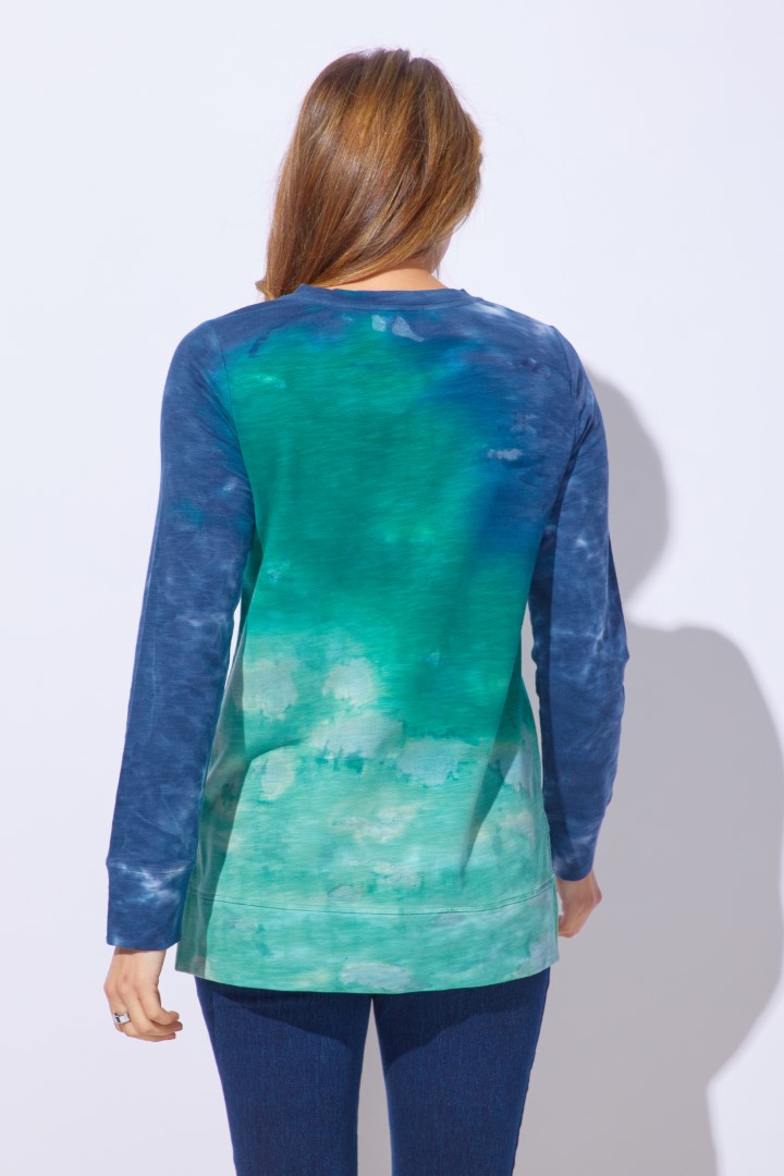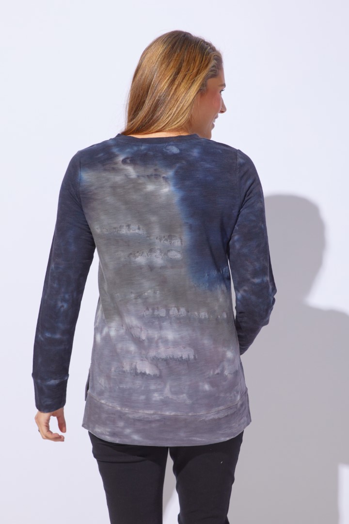 Lumina Burnout 3/4 Sleeve Tunic Top with Round Hem