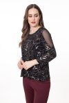 Printed Knit Tunic with Round Neckline and 3/4 Sleeve