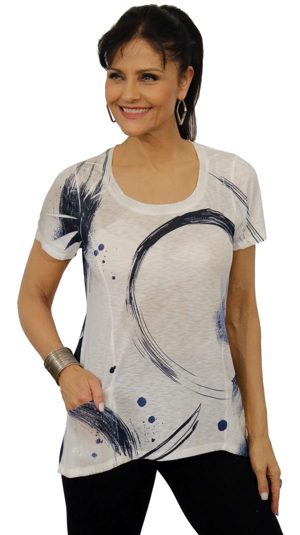 Printed Knit Tunic with Round Neckline and 3/4 Sleeve