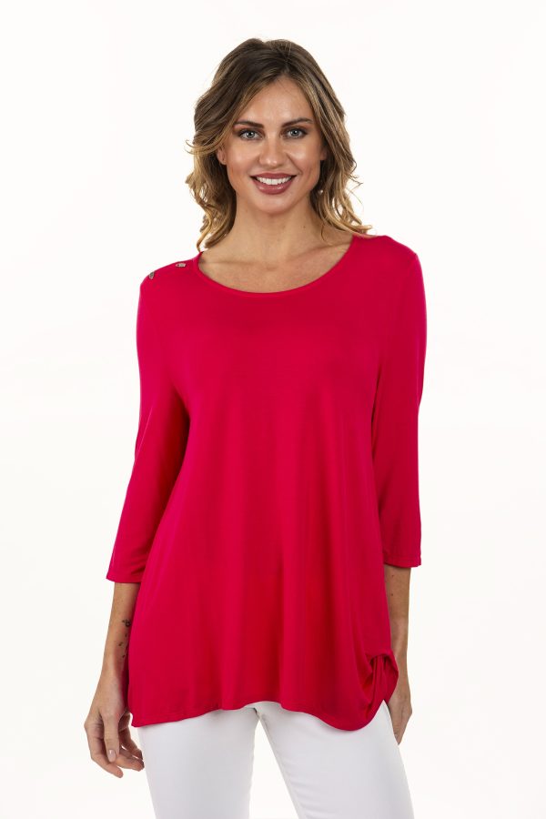 Cuffed Tab 3/4 Sleeve Two Pocket Band Collar Button Front Shirt