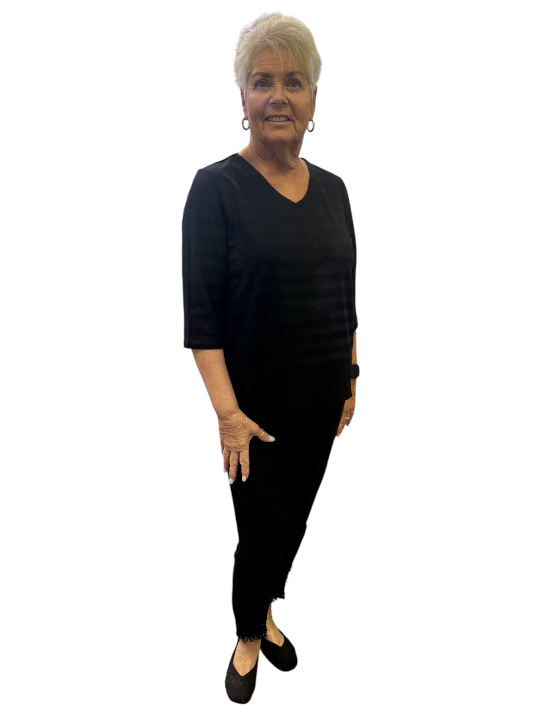 Silver 3/4 Open Slit Sleeve V Neck Top