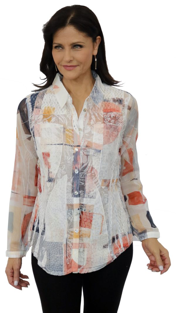 White Postcard Mineral Washed Cotton Top with Linen Handkerchief Hem