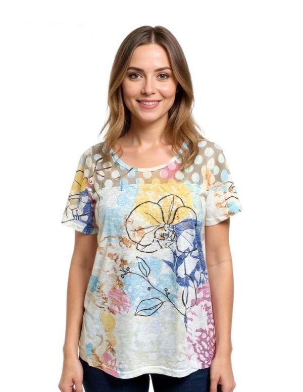 Mineral Washed Short Sleeve Top with Rib Contrast and Pocket