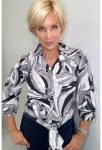 Woven Button Front Point Collar 3/4 Cinch Tassel Tie Sleeve
