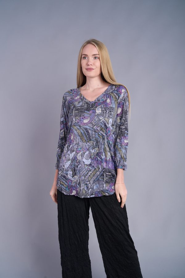 V Neck 3/4 Sleeve Crinkle Top quantity