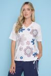 Peony Print Scoop Neck Soft Knit Top w/ 3/4 Sleeve